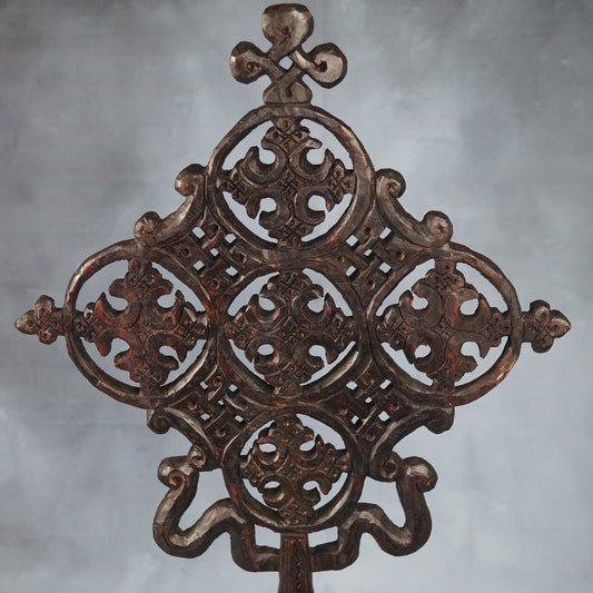 Handgeschnitztes Äthiopisches Vortrage/Prozessionskreuz aus Holz